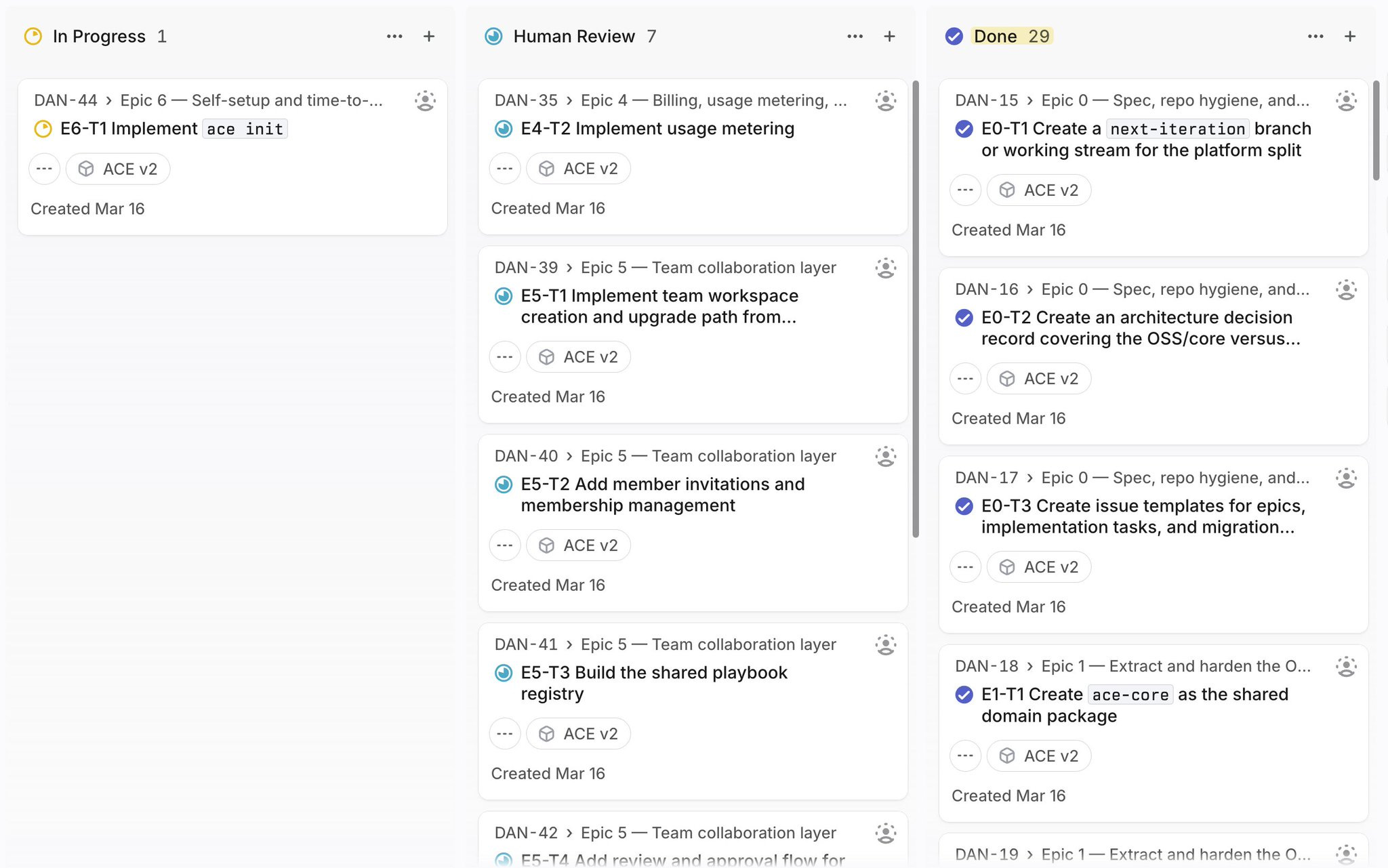 Everything I just described is open source. The ace-platform repo has the full Symphony integration wired up as a working reference implementation.