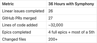 Entrepreneurship is about to explode. A solo founder with Symphony can ship what used to take a 10-person engineering team. Maybe even a 100-person team. The bottleneck moves from “can I build this?” to “should I build this?” And that second question is far more interesting than the first.